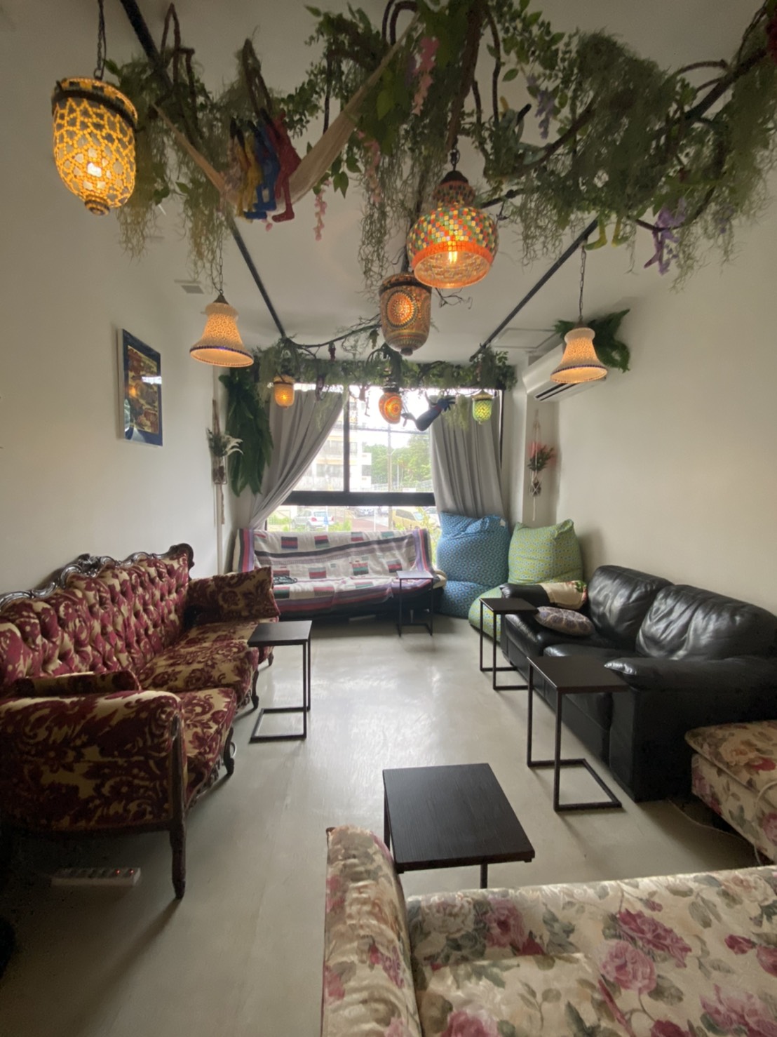 沖縄県那覇市・国際通りでシーシャを楽しむなら【masacari sakurazaka - マサカリ桜坂】 「沖縄 シーシャ」「那覇 シーシャ」でお馴染みのmasacari2号店となります。 沖縄県那覇市の中でも国際通りや桜坂といった人気エリアにお店を構え、近所には「のれん街・ハイアットリージェンシー・やちむん通り」と言った人気スポットもございます。 トルコランプとアンティークソファー、数々の草木をメインとした落ち着いた空間で美味しいシーシャ(水タバコ)を堪能できるシーシャカフェです。 国際通りのれん街・ハイアットリージェンシー近く 黒い二階建ての建物で、1Fピザ屋さんその2Fがmasacari sakurazakaとなります。 来店と同時にシーシャを楽しんで頂く事もできますのでご予約はDMで♪