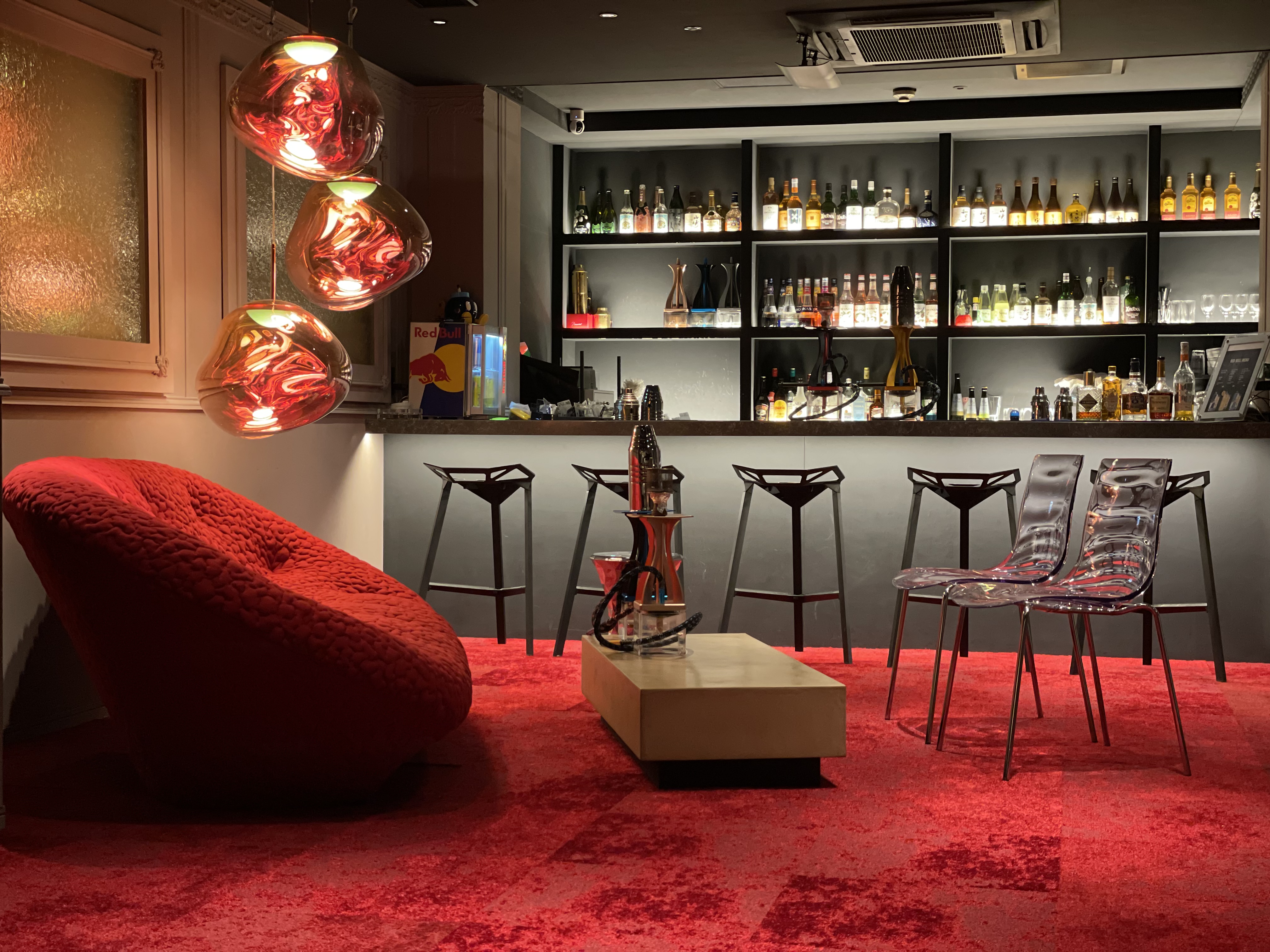煙の質、ドリンク、内装全てに妥協せず磨き上げた至極のシーシャ屋が2021年8月に栄・住吉にオープン。 しっとりとしたライティングの店内で、濃い煙の陰影を楽しみながらリラックスしたひと時をお楽しみ頂けます。 最先端のバイオエタノール暖炉を完備した16名様まで収容できる独立のお部屋から、フランス製の包まれる座り心地のお二人席、スタッフと会話の弾むカウンターとご用途に合わせてお使い頂けます。 中東系フレーバーDOZAJを始め、アメリカンフレーバーメーカーとフレーバーも数多く揃え、シーシャビギナーのお客様からよく嗜まれる方まで幅広く対応致します。