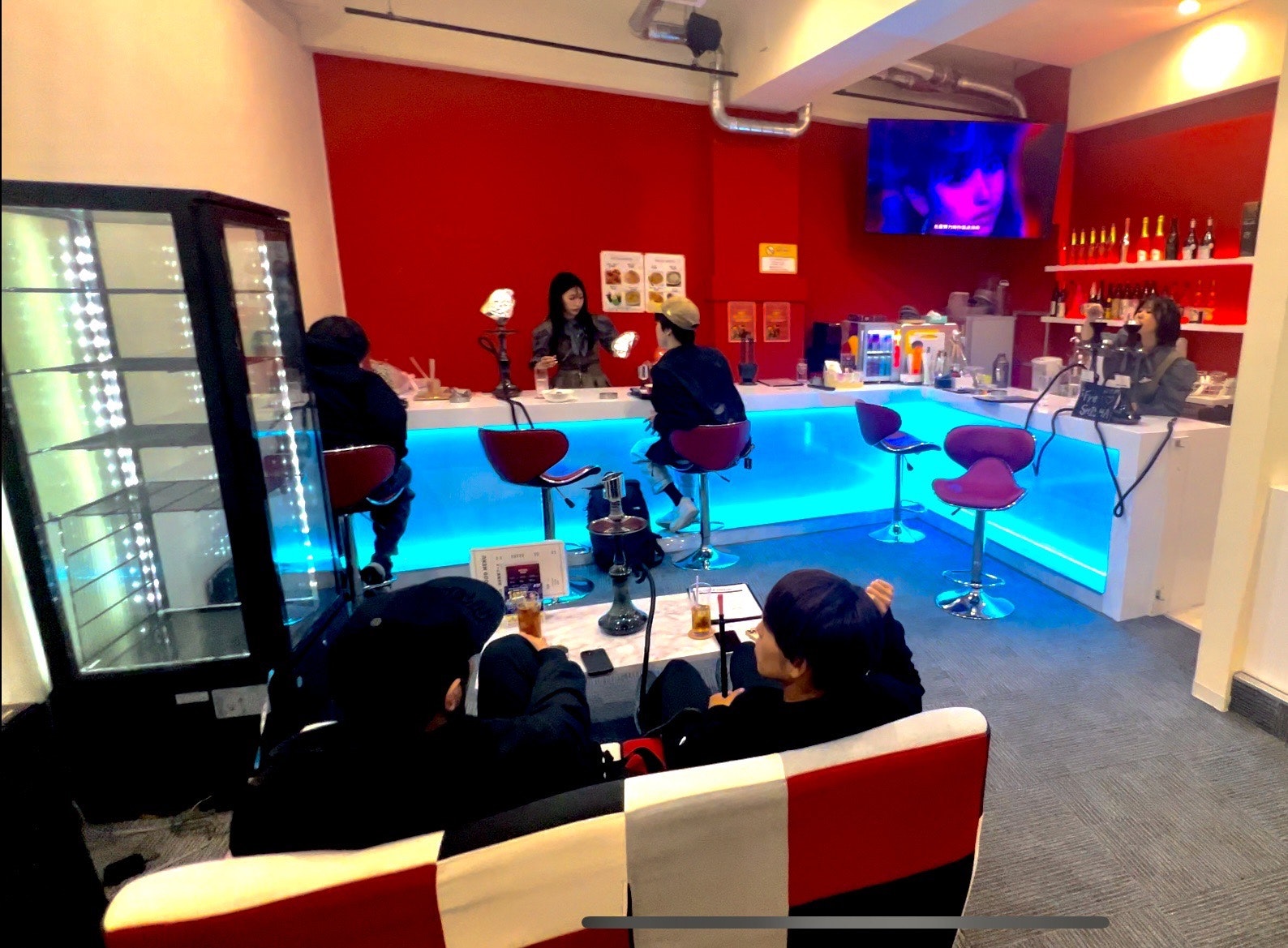 当店はカウンターでシーシャを提供し、スタッフとお話しながら楽しんでいただけるシーシャバーです。初心者の方はもちろん、お一人の時間を楽しみたい方も大歓迎! ソファ席もあるため、くつろぎたい方にもおすすめです。